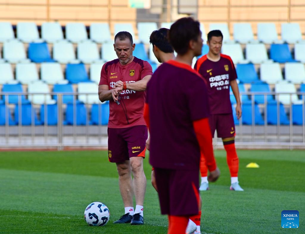 Dejan Djurdjevic (L), caretaker manager of Chinese national men's football team attends a training session in Dalian, northeast China's Liaoning Province, July 2, 2025. (Xinhua/Wu Qinghao)
