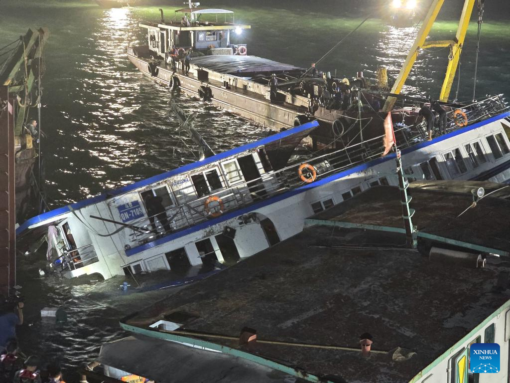 Rescuers work at the capsizing site of a cruise ship in Ha Long Bay, northern Vietnam's Quang Ninh province, July 20, 2025. [Photo/Xinhua]