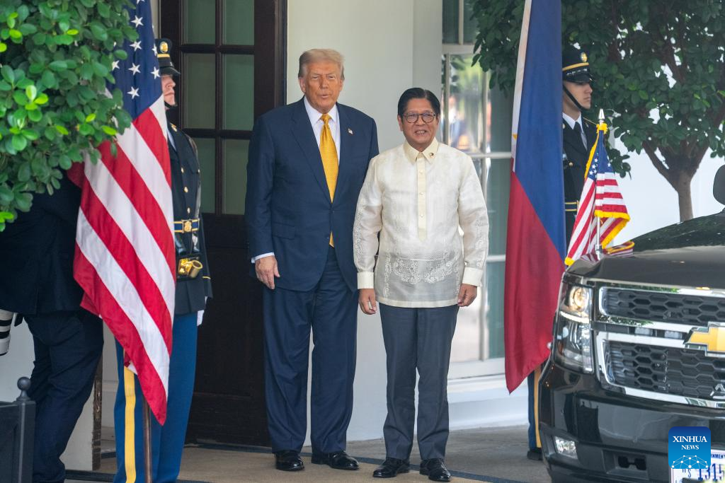U.S. President Donald Trump (2nd L) welcomes Philippine President Ferdinand Romualdez Marcos Jr. (2nd R) at the White House in Washington, D.C., the United States, on July 22, 2025. [Photo/Xinhua]