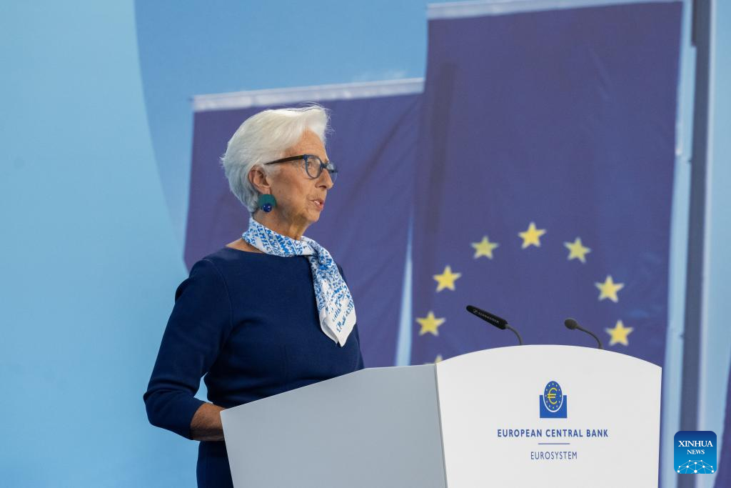 European Central Bank President Christine Lagarde attends a press conference in Frankfurt, Germany, on July 24, 2025. [ECB/Handout via Xinhua]