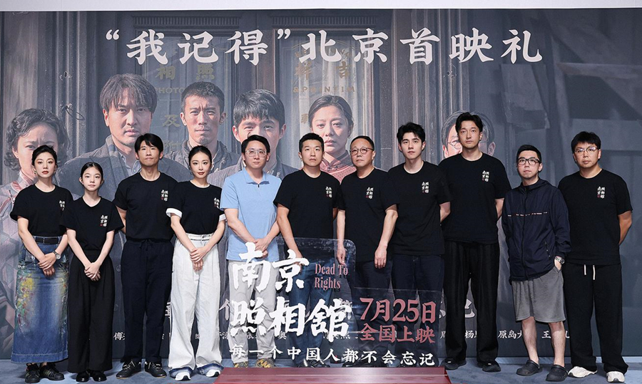 The cast and crew of "Dead to Rights" pose for a photo at the film's premiere, themed "every Chinese person will not forget," in Beijing, July 24, 2025. [Photo courtesy of China Film Group]