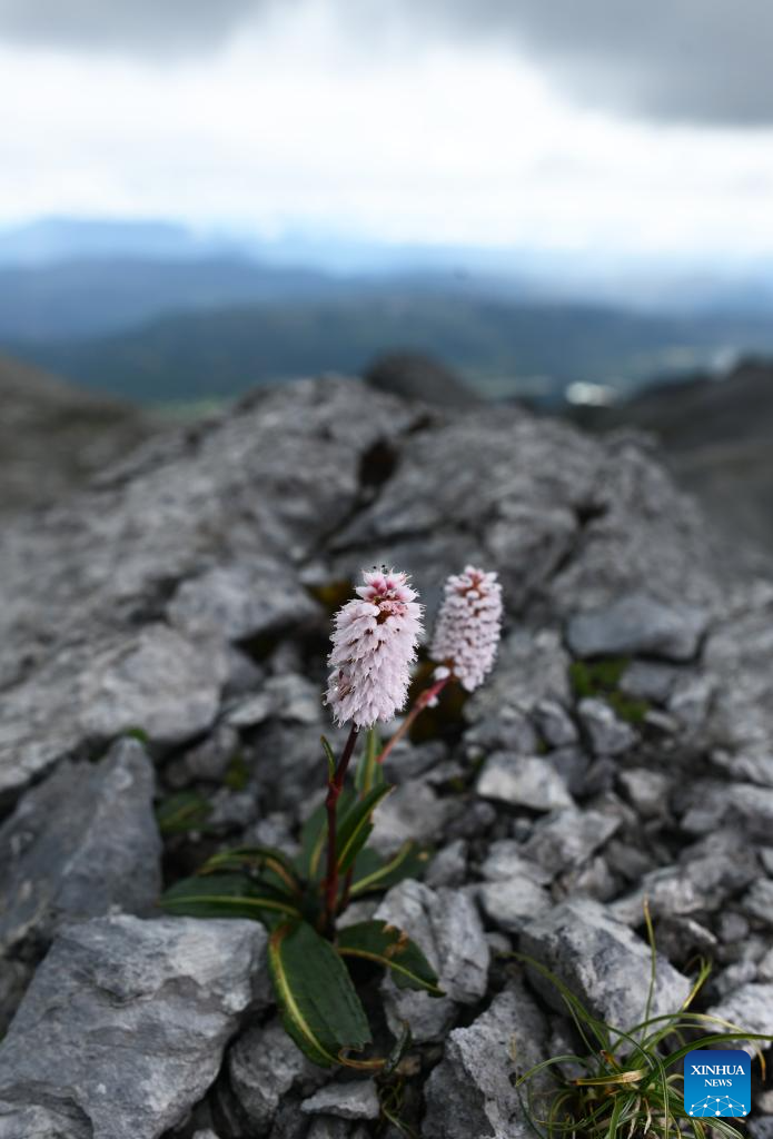 This photo taken on July 23, 2025 shows a Polygonum viviparum L. on Yulong Snow Mountain in Lijiang, southwest China's Yunnan province. Known as "Plant Kingdom" in China, Yunnan nurtures a wealth of rare alpine plants thanks to its unique geographical position, diverse landforms and complex climatic conditions. (Photo by Zhao Qingzu/Xinhua)