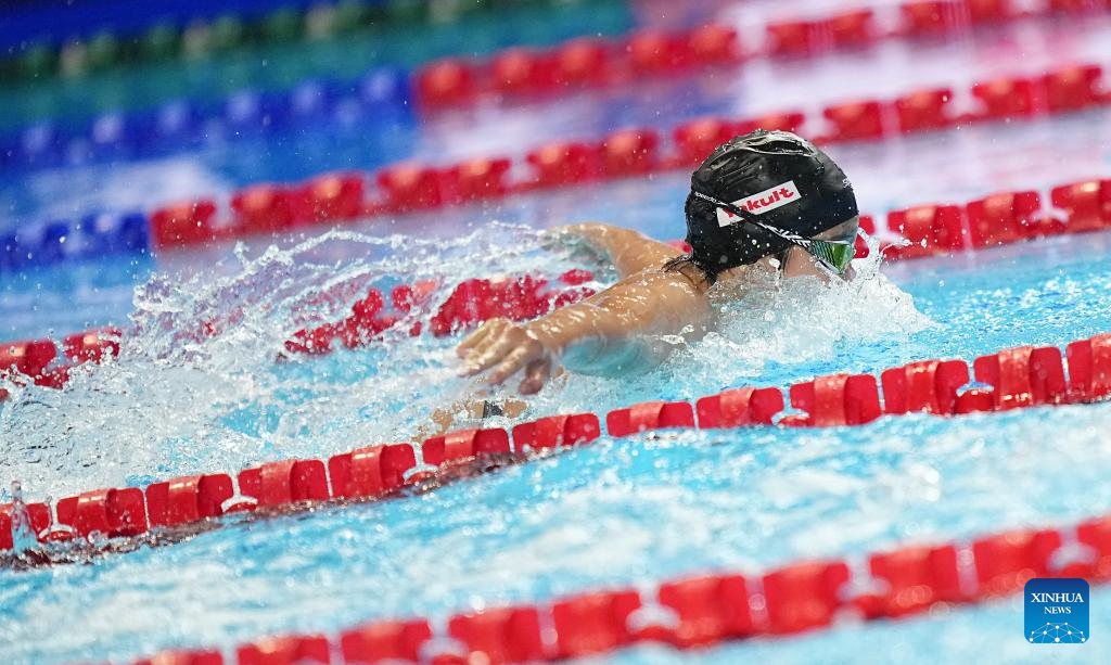 Yu Zidi of China competes during the women's 200m butterfly semifinal of swimming at the World Aquatics Championships in Singapore, July 30, 2025. (Xinhua/Xia Yifang)