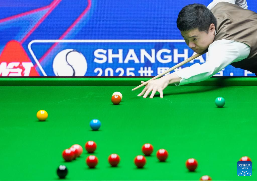 Ding Junhui competes during the quarterfinal match between Zhao Xintong of China and Ding Junhui of China at the World Snooker Shanghai Masters 2025 in Shanghai, east China, July 31, 2025. (Xinhua/Ding Ting)