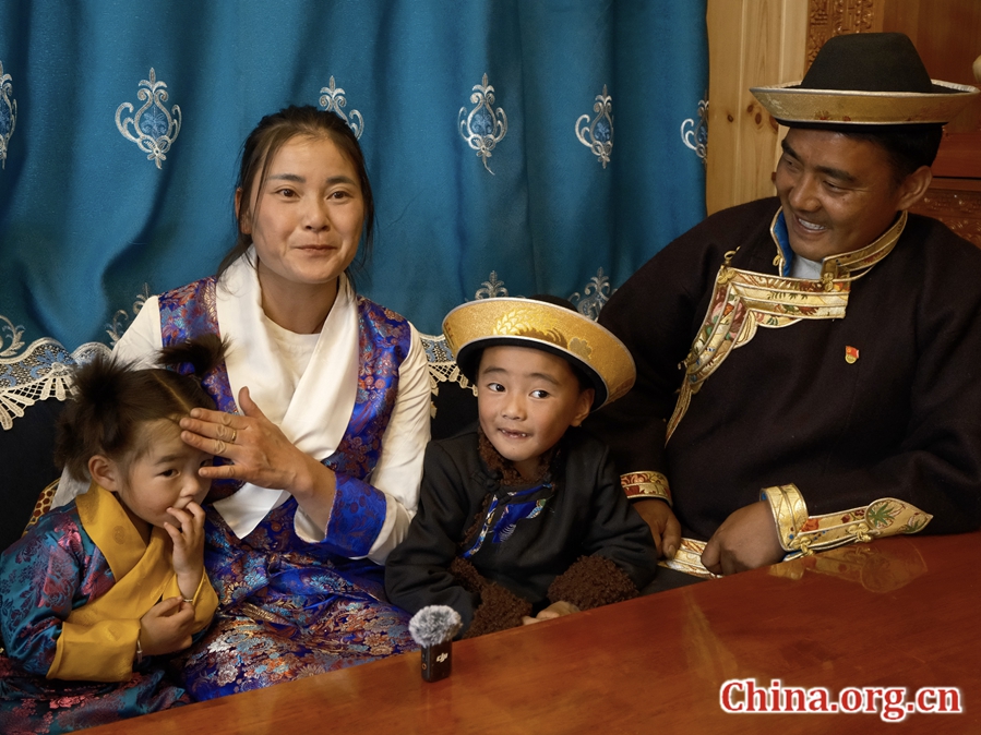 Lhakpa Tundrup, his wife Liang Qinglan and their children at home in Tsogo village, Gongbo Gyamda county, Nyingchi, Xizang Autonomous Region, July 26, 2025. [Photo by Liao Jiaxin/China.org.cn]