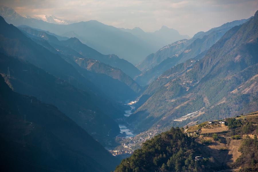 This photo taken on March 26, 2025 shows a view of the Nujiang River canyon in Lisu Autonomous Prefecture of Nujiang, southwest China's Yunnan Province. [Photo/Xinhua]