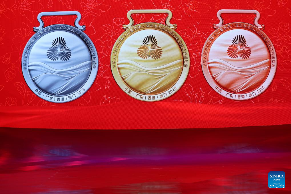 Photo taken on Aug. 2, 2025 shows the medals for China's 12th National Paralympic Games, along with the 9th National Special Olympics Games in Shenzhen, south China's Guangdong Province. (Xinhua/Liang Xu)