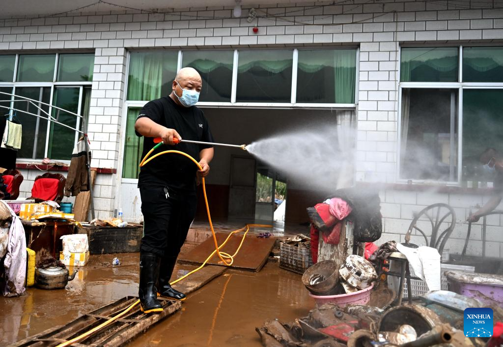 A staff member conducts disinfection operations in Nantai Village in Liudaohe Town, Xinglong County of north China's Hebei Province, Aug. 2, 2025. (Xinhua/Wang Xiao)