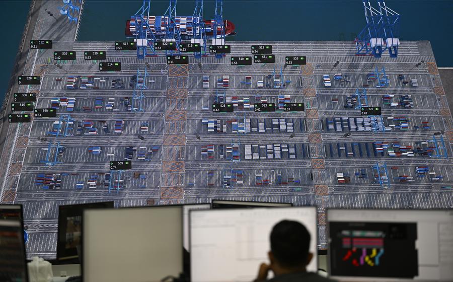 A staff member monitors the operation of Chancay Port in the operation center of COSCO Shipping Ports Chancay Peru, in Chancay, Peru, May 16, 2025. [Photo/Xinhua]