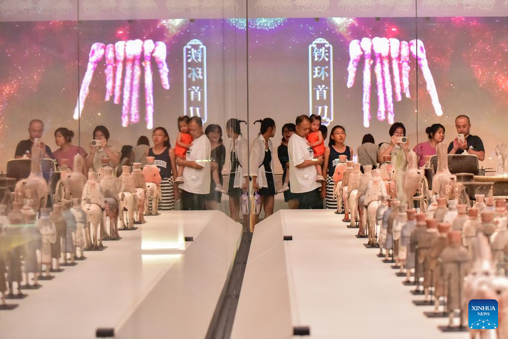 Children and parents visit the Qingzhou Museum in Qingzhou, east China's Shandong Province, Aug. 2, 2025. [Photo/Xinhua]