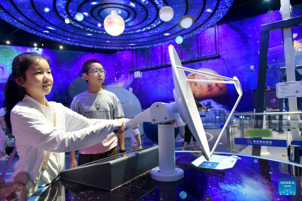 Children visit a science and technology museum in Zaozhuang, east China's Shandong Province, Aug. 2, 2025. [Photo/Xinhua]